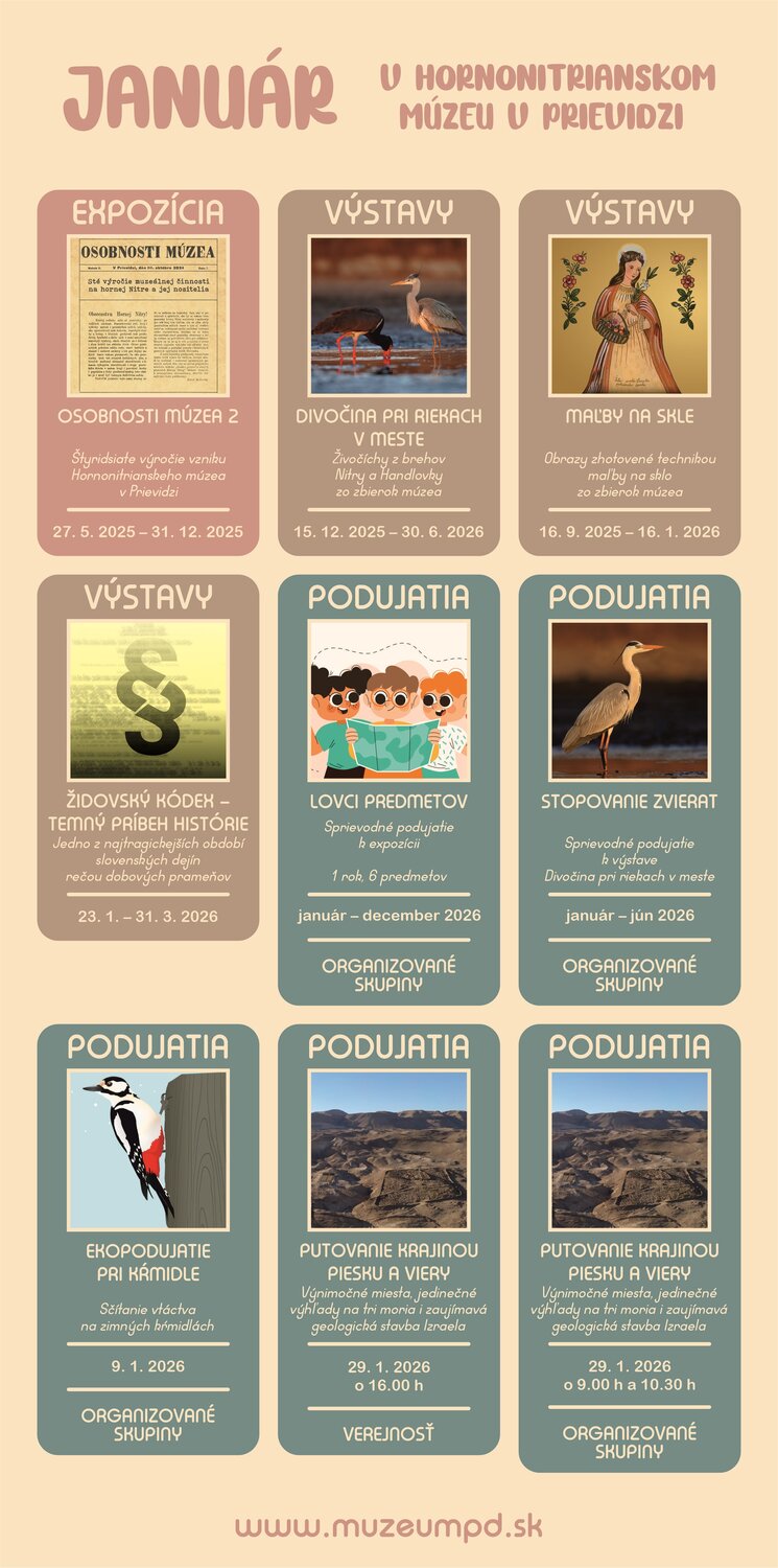 Čo ponúka program Hornonitrianskeho múzea v Prievidzi na mesiace január - marec?