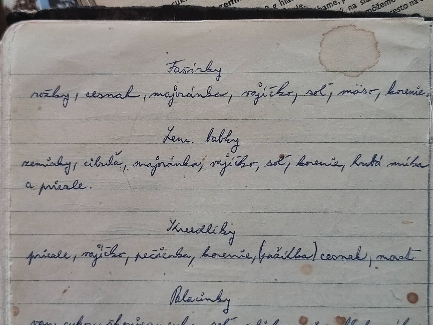 (zdroj: zápisy zdedených receptov z prelomu 60. a 70. rokov 20. storočia, z výskumu autora)