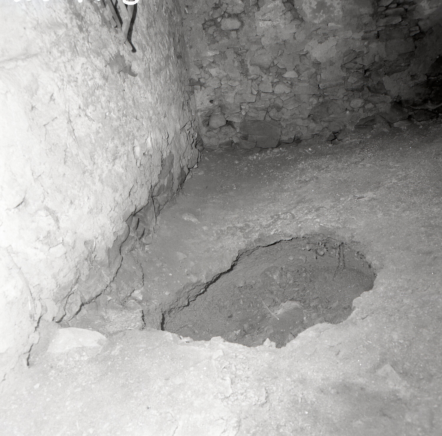 Jama na zemiaky vykopaná v komore, v priereze má hruškovitý tvar, Liešťany/Nevidzany, druhá polovica 20. storočia (Hornonitrianske múzeum v Prievidzi, Dokumentačný fond, Negatívy-terén, evidenčné číslo NT-8710)