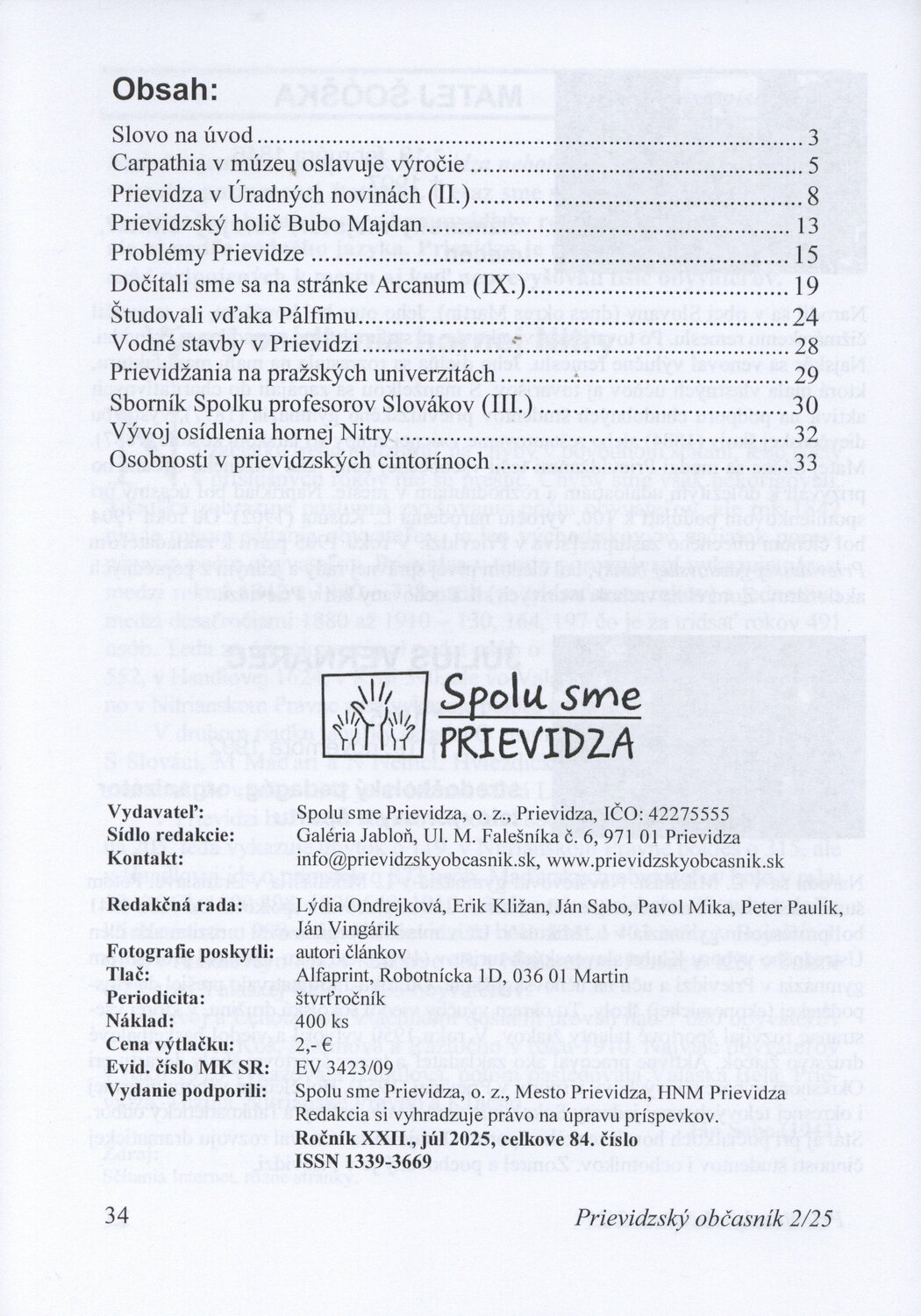 Hneď prvým článkom ešte stále aktuálneho čísla časopisu Prievidzský občasník je príspevok našej kolegyne o výstave venovanej 150. výročiu najstaršieho priemyselného podniku v Prievidzi, predĺženej do 30. novembra 2025. Po nahliadnutí do obsahu čísla zistíte, že zďaleka nie je jediným, pre ktorý sa ho oplatí kúpiť. Dostanete ho na informáciách Hornonitrianskeho múzea v Prievidzi na Košovskej ceste, v Galérii Jabloň na Ulici M. Falešníka, v Turisticko-informačnej kancelárií na Námestí slobody, ako aj v Potravinách pod Brezičkami v Necpaloch.